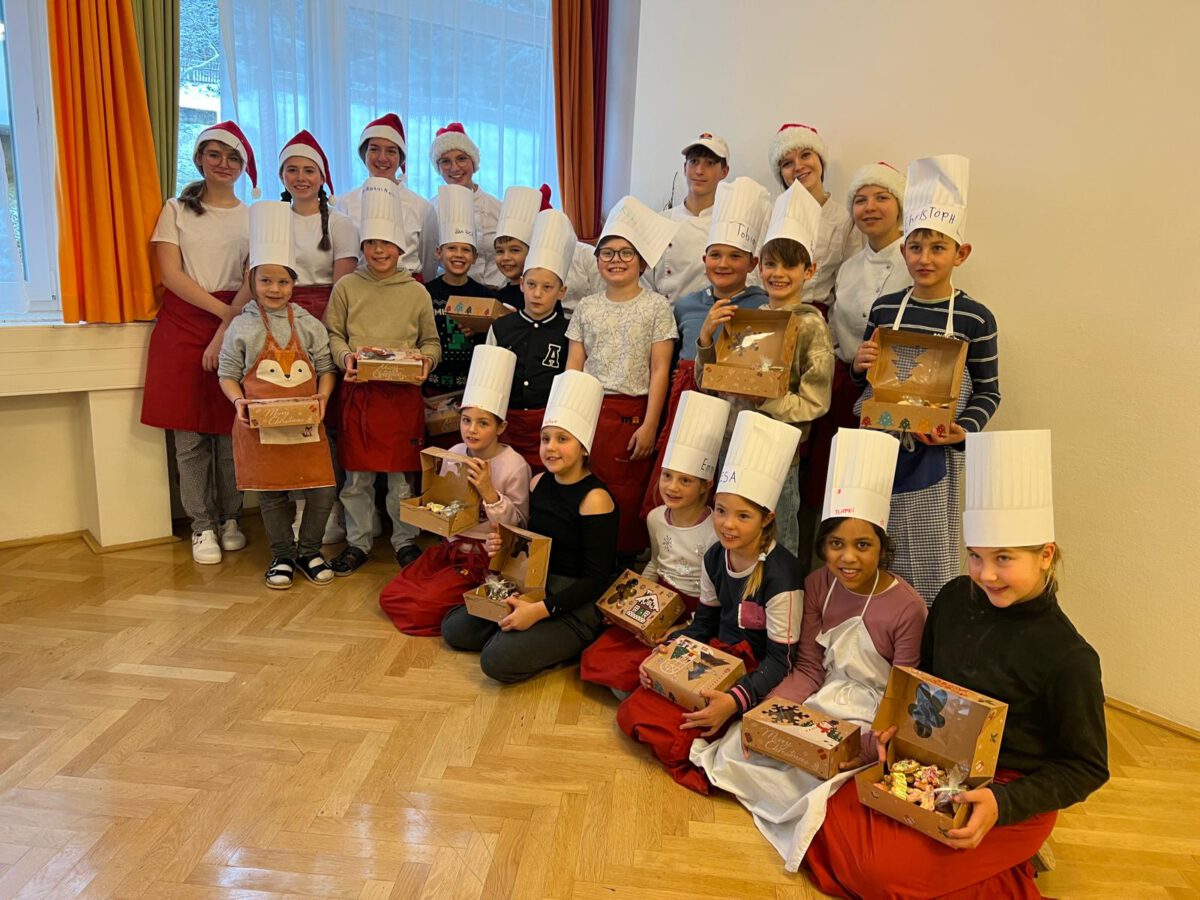 In der Vorweihnachtszeit durfte das multiaugustinum erneut die 3.Klasse der Volksschule Mauterndorf zum gemeinsamen Kekse backen willkommen heißen. Gemeinsam mit den Schüler:innen der 2HW wurde mit viel Engagement und Kreativität eine weihnachtliche Backstube geschaffen. Beim Backen, Verzieren, Verpacken und gemeinsamen Verkosten der Kekse kam auch der Spaß nicht zu kurz. Weihnachtsmusik und warmer Punsch sorgten für eine gemütliche Atmosphäre. Diese Begegnung bereitete sowohl den Volksschulkindern als auch unseren Schüler:innen große Freude und machte diesen Tag zu etwas ganz Besonderem.